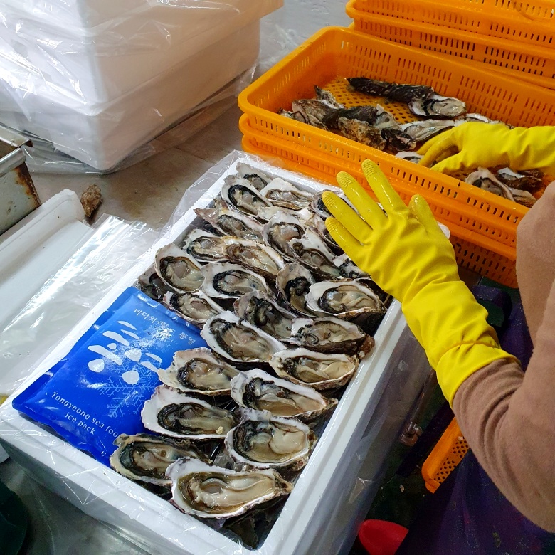 지금 당장 횟감으로 먹을 굴의 선도를 직접 볼 수 있다는게 가장 큰 장점!